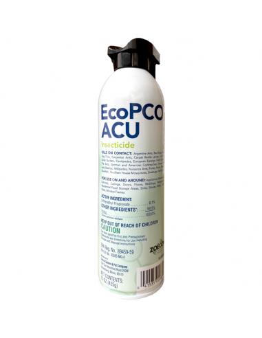 EcoPCO ACU Multi-Purpose Residual Aerosol Insecticide has the flushing action of natural pyrethrum. EcoPCO ACU Aerosol is a low environmental and mammalian toxicity in the botanical pesticide product line. Patented technology is based on the natural defenses that plants and trees use for their self-protection against insects and pathogens-essential oils.
